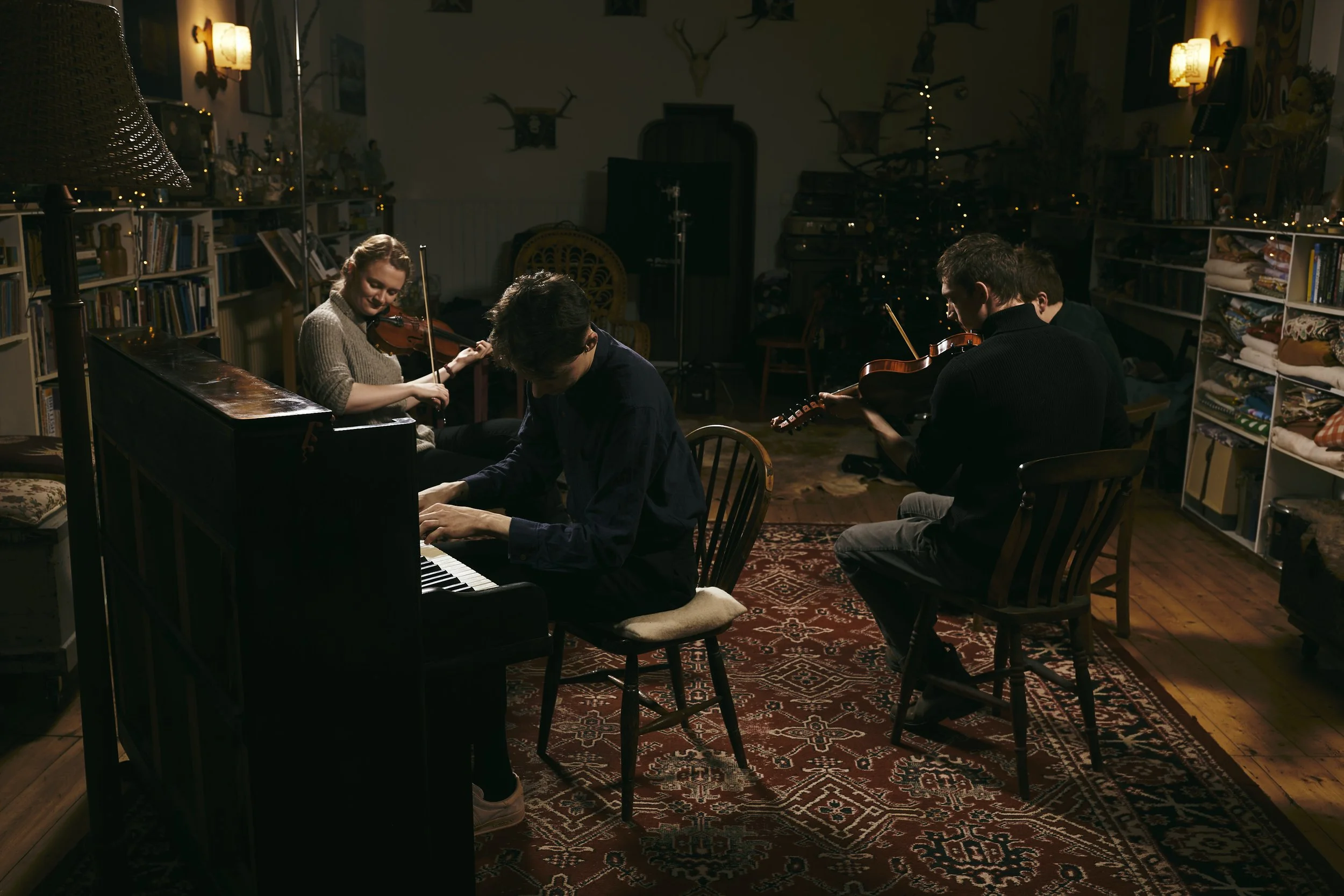 After years of collaboration in a range of settings, bandmates Charlie Grey, Sally Simpson, Owen Sinclair and Joseph Peach formed Westward the Light to make instrumental Scottish music in a way both true to their traditional roots, and pointing to the future.